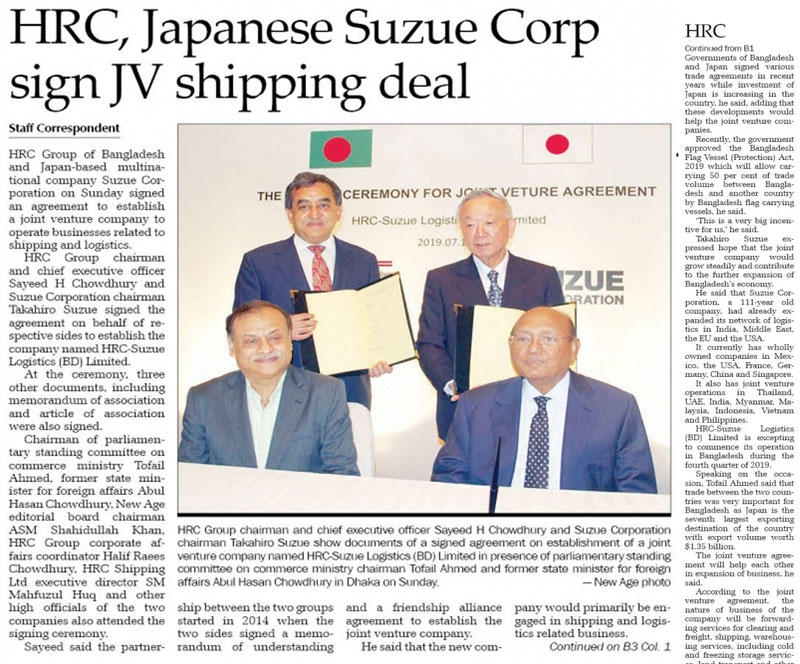 Publisher of the National Bengali JaiJaiDin and Weekly Protichitra (Blue Print). HRC also holds major equity in the Knowledge-Based English Weekly Holiday and the Dynamic - Daring - Daily New Age